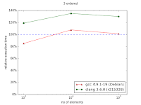In the case of ordered index it's visible that either standard containers were improved or compilers learned how to optimize code using them better. Nevertheless, there is visible trend showing that with more than 106 entries, multi_index container could perform better than naive approach.